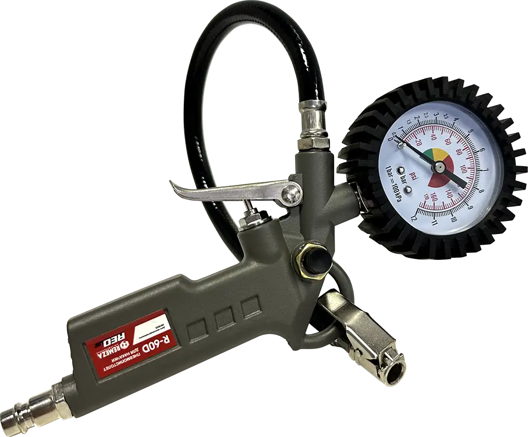 - пневмопистолет для накачки шин с манометром R-60D, с механическим манометром, длина шланга 400 мм;